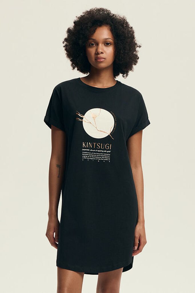 Dámskou noční košilku Dairoku zdobí unikátní japonský motiv a má slušivou černou barvu.