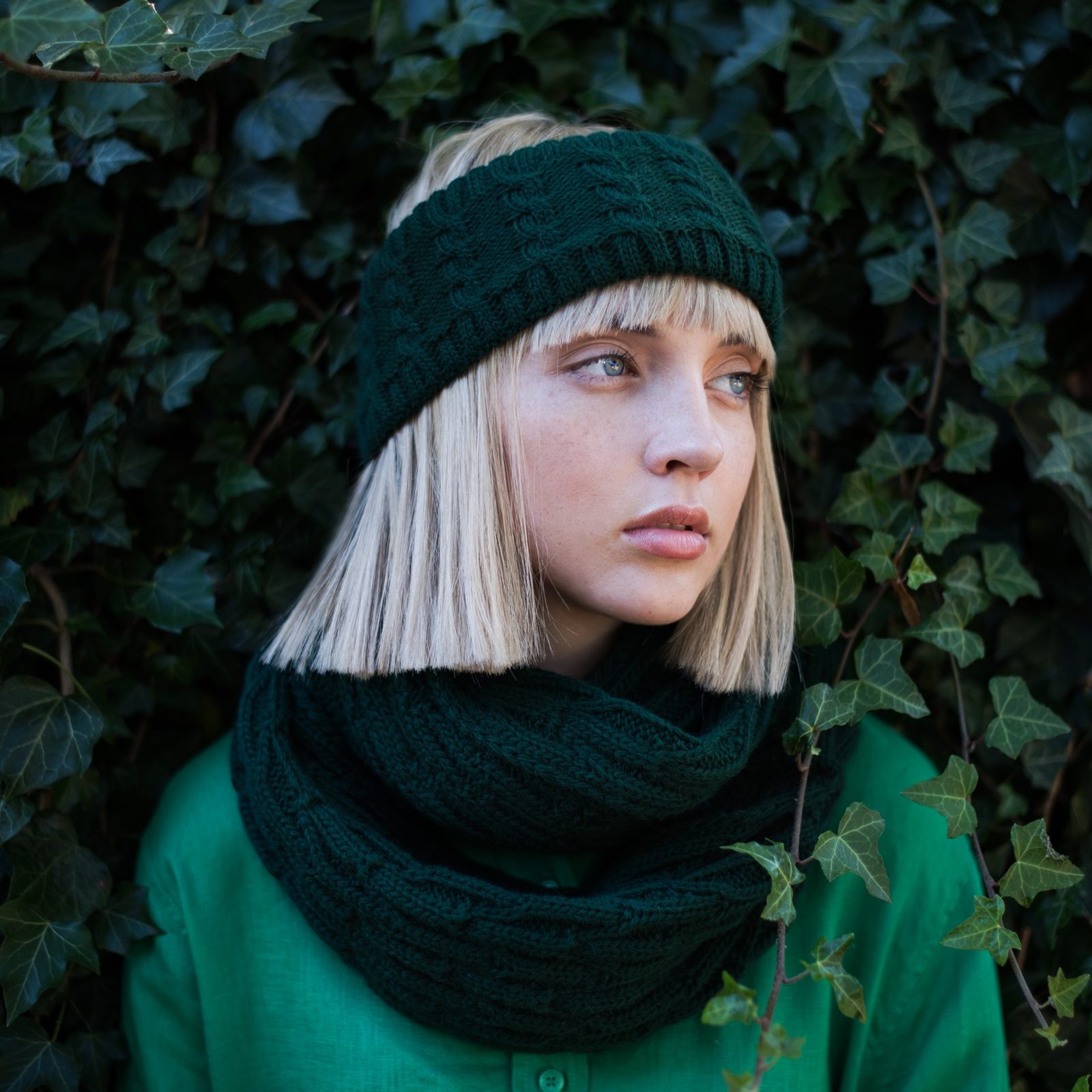 Podzimní pletená čelenka modrá