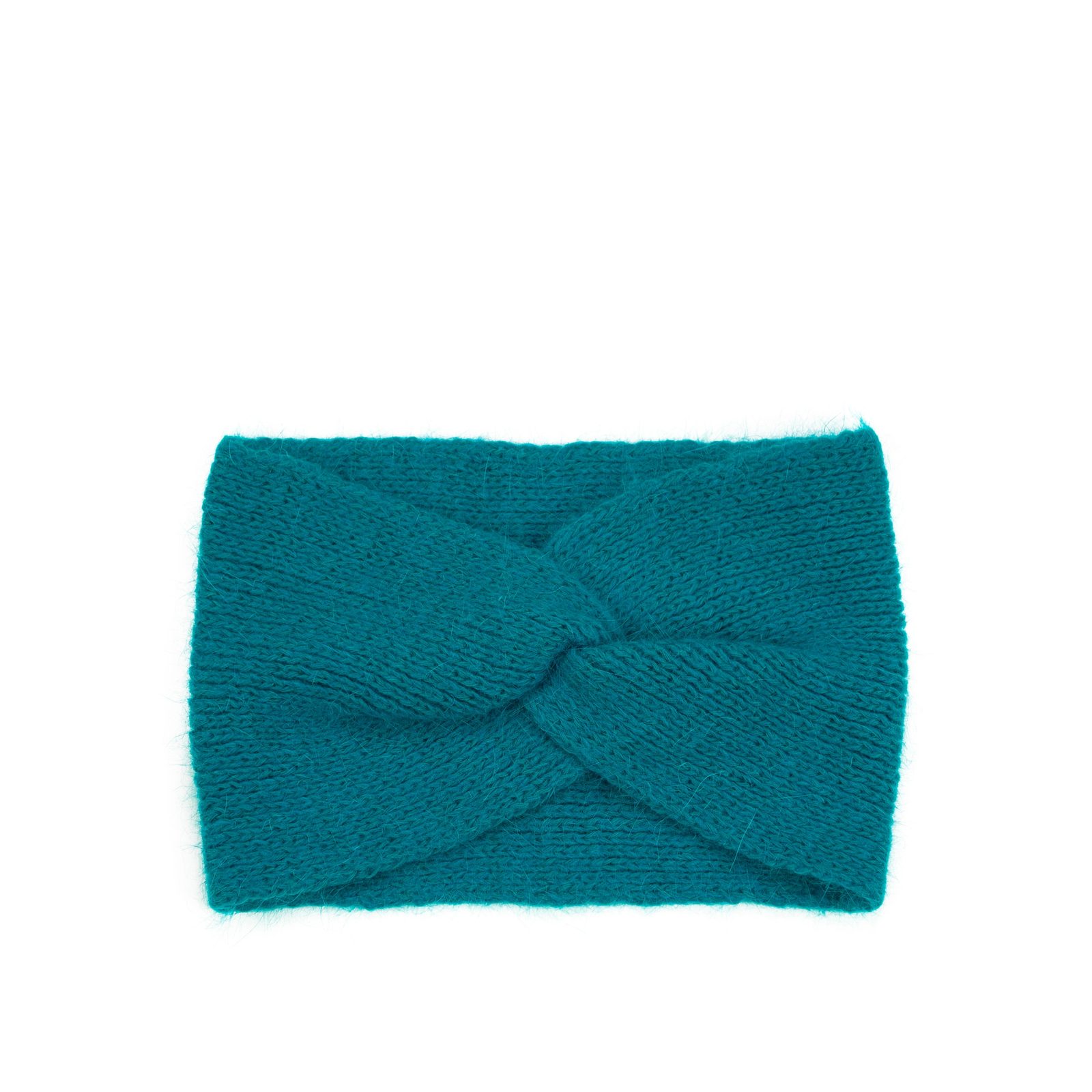 Podzimní pletená čelenka modrá