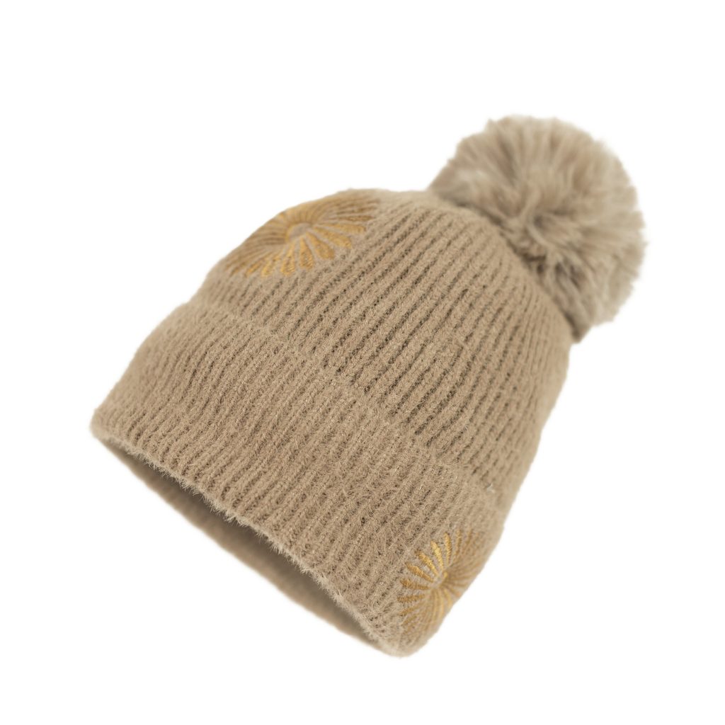 Čepice s fluffy bambulí šedá Teplá zimní čepice s střapcem hnědá