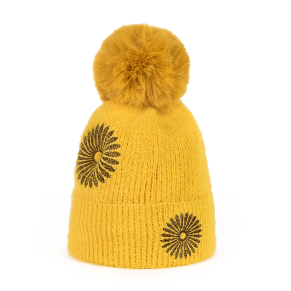 Zimní čepice s hvězdou a bambulí žlutá
