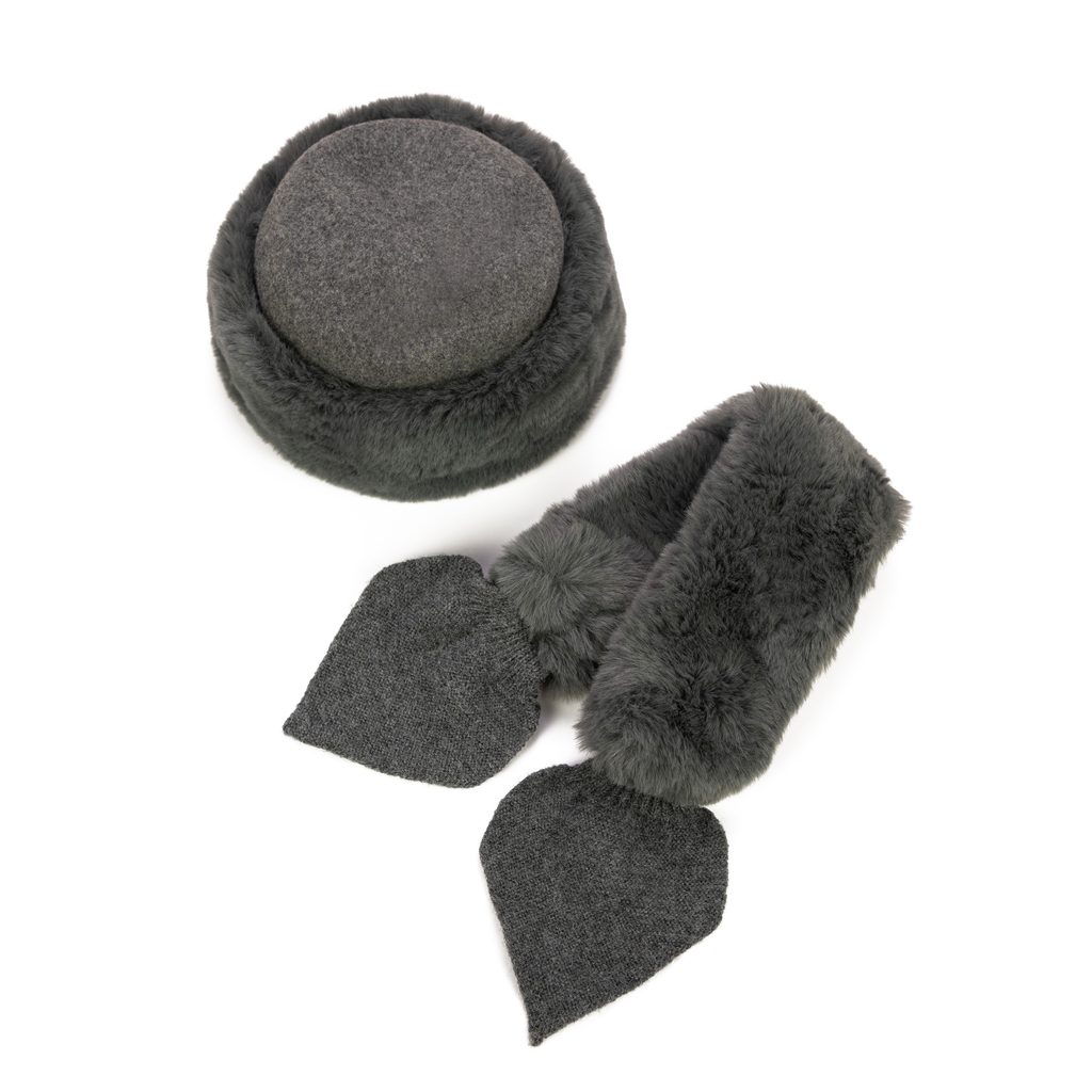 Sada čepice s nákrčníkem šedá Čepice, šála - světlešedá
