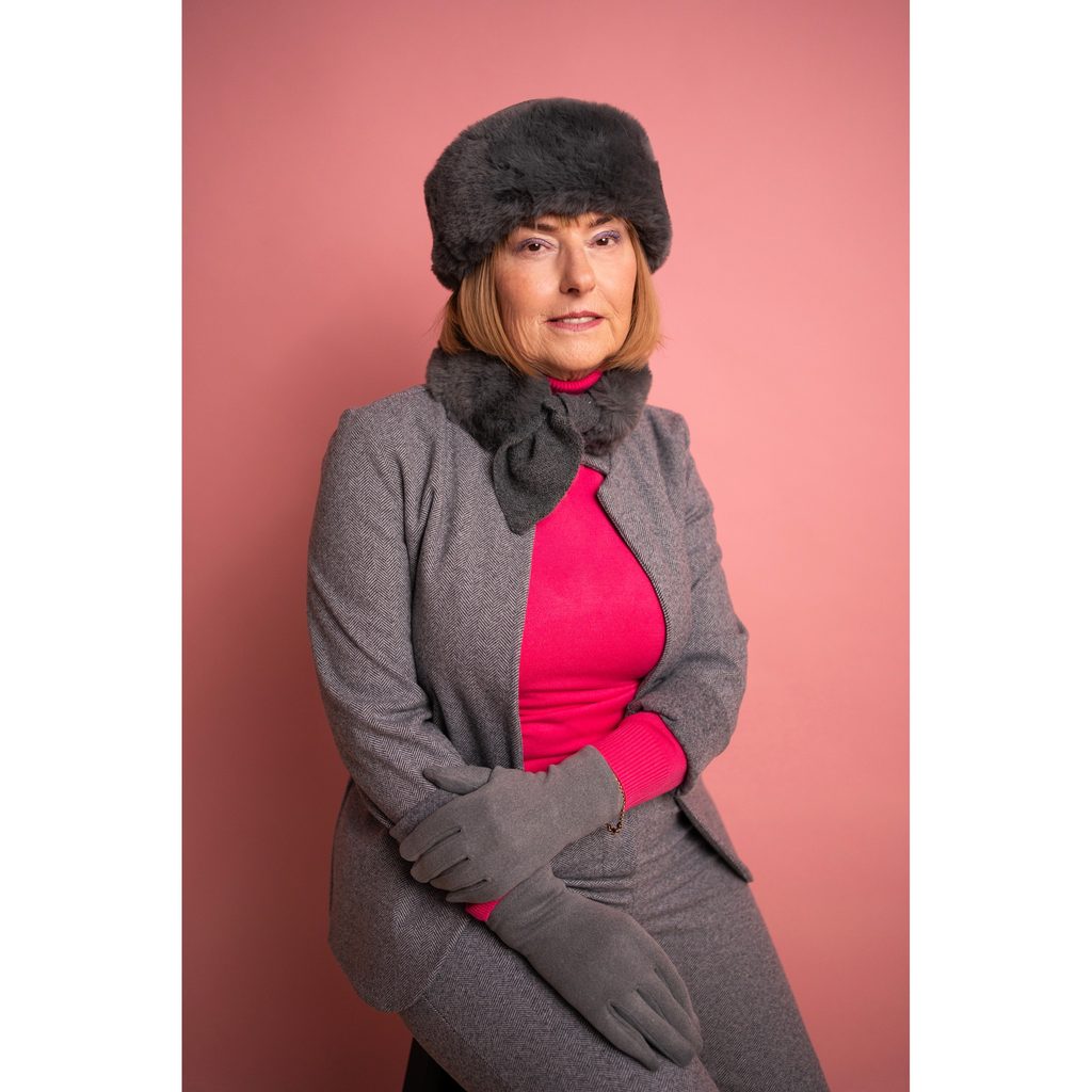 Čepice, palčáky - šedá Čepice, šála - světlešedá