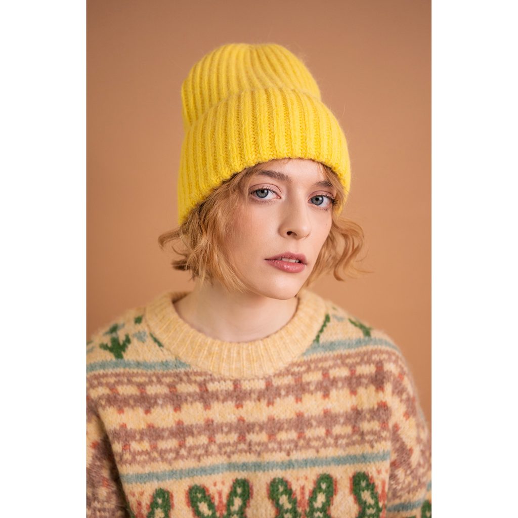 Teplá čepice na zimu. Provedená z měkkého a příjemného materiálu. Spodní část na zahnutí. Vejdou se do ní sepnuté vlasy. Hodí se ke každodenním stylizacím.