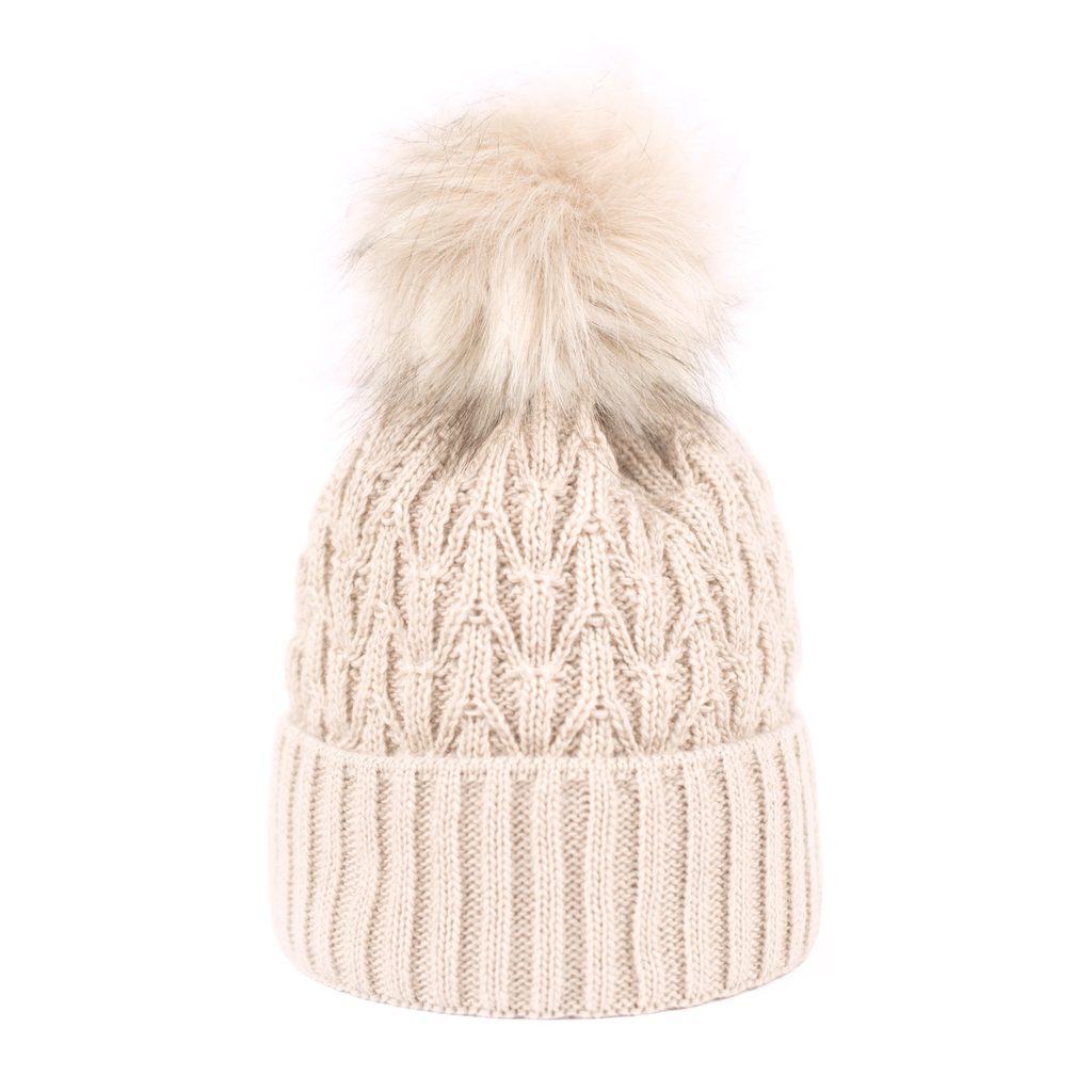 Čepice béžová s bambulí