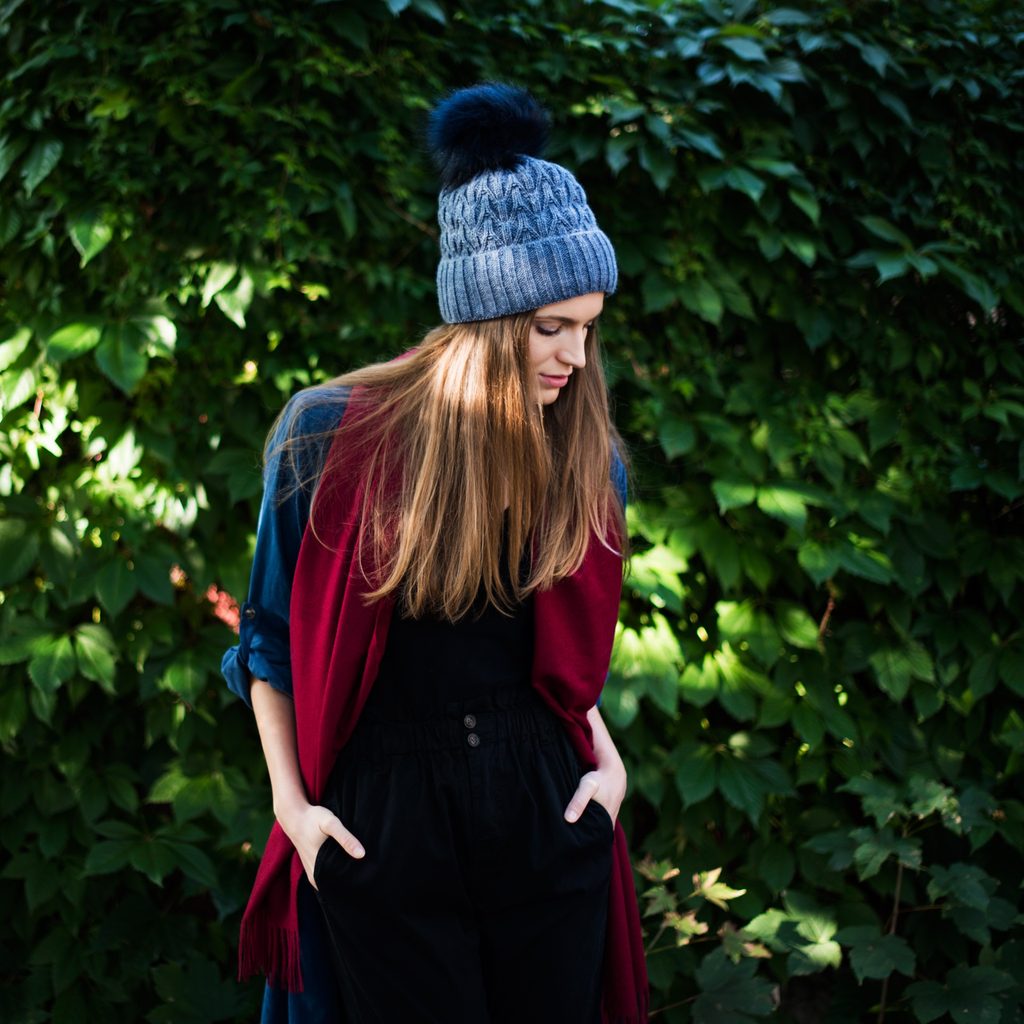 Zimní čepice s bambulí. Provedená z nekousavého materiálu. Bambule provedená z umělé kožešiny. Lehce elastická. Hodí se zároveň k neformálním i elegantním stylizacím. Vyrobeno v Polsku.