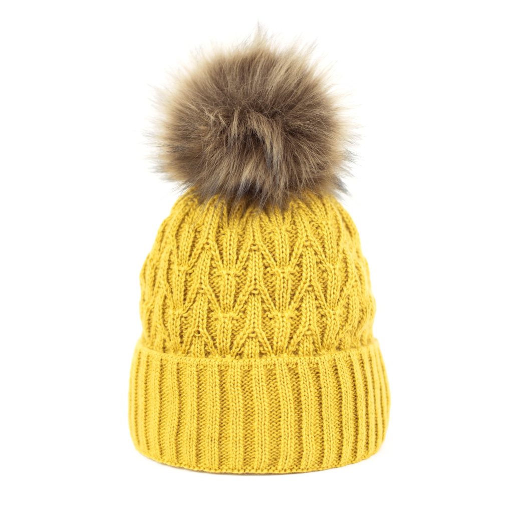 Zimní čepice s bambulí. Provedená z nekousavého materiálu. Bambule provedená z umělé kožešiny. Lehce elastická. Hodí se zároveň k neformálním i elegantním stylizacím. Vyrobeno v Polsku.
