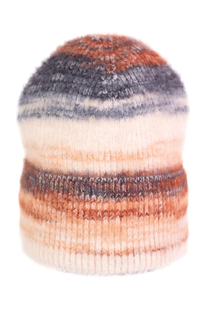 Zimní pletená čepice. Provedená z měkkého a příjemného materiálu. Spodní část na zahnutí. Vejdou se do ní sepnuté vlasy. Hodí se ke každodenním stylizacím.