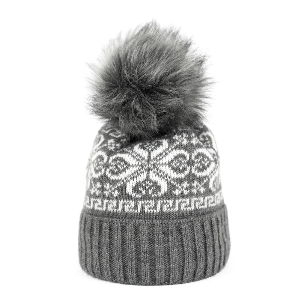 Šedorůžová čepice s bambulí Bílá čepice s bambulí