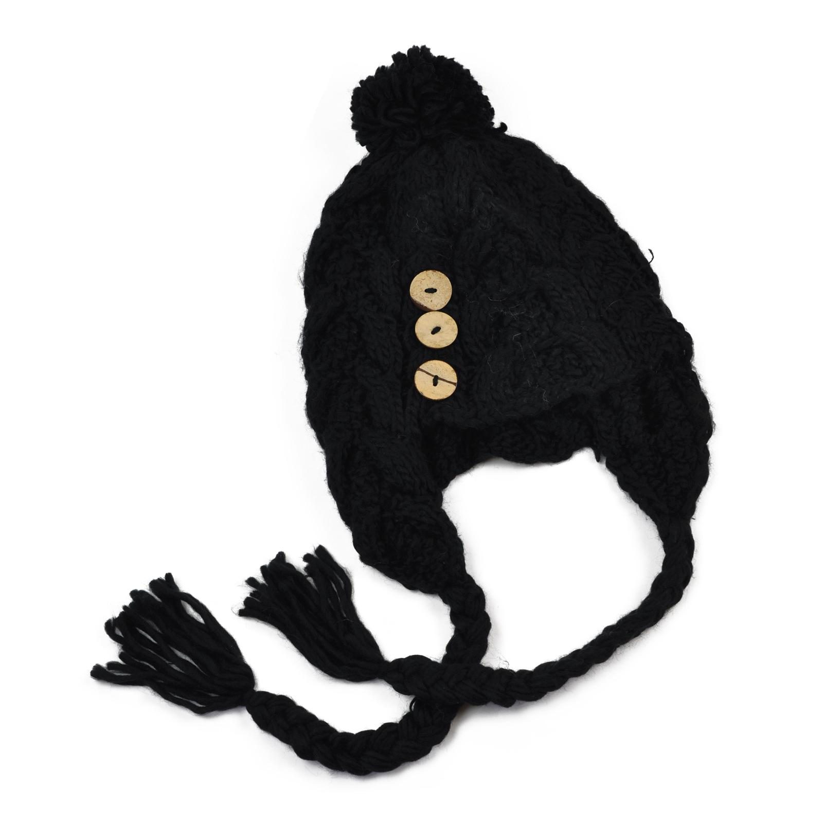 Černá pletená čepice s cik cak vzorem Světle růžová čepice se zimním vzorem