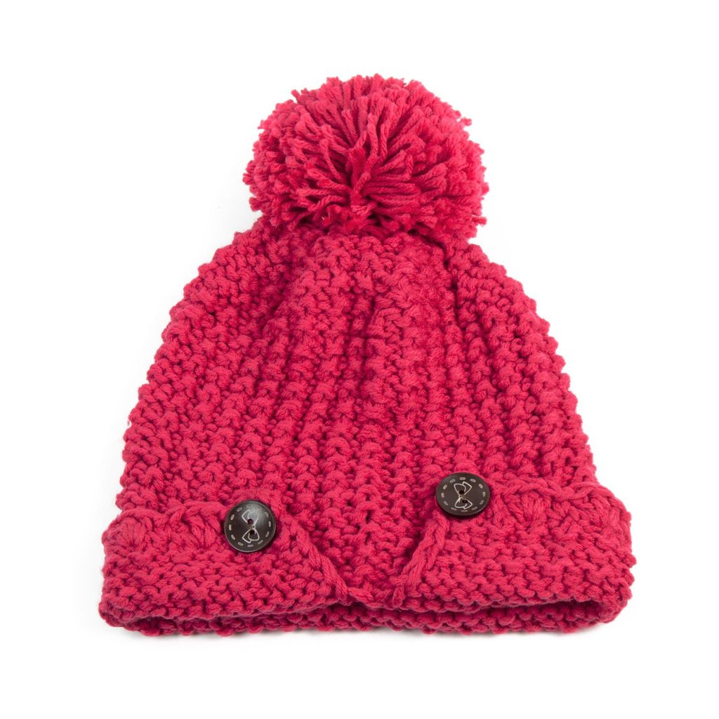 Zimní čepice s dvěma knoflíky a bambulí.