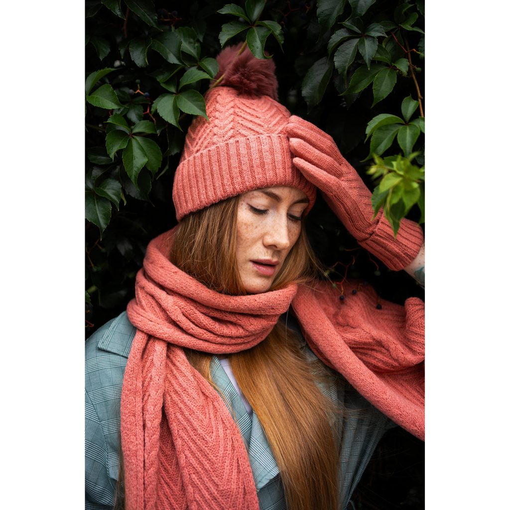 Červená sada šály a čepice Intensive winter