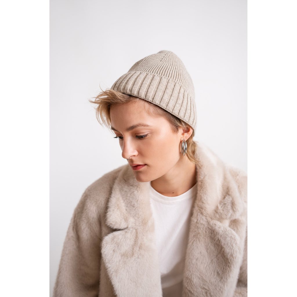 Zimní čepice v klasickém střihu. Spodní část na zahnutí. Lehce elastická. Hodí se ke každodenním stylizacím. Unisex.