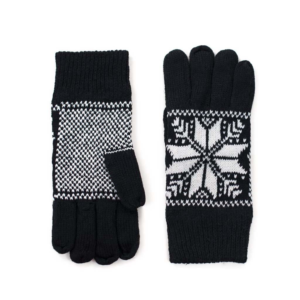 Černé rukavice s bílým zimním vzorem