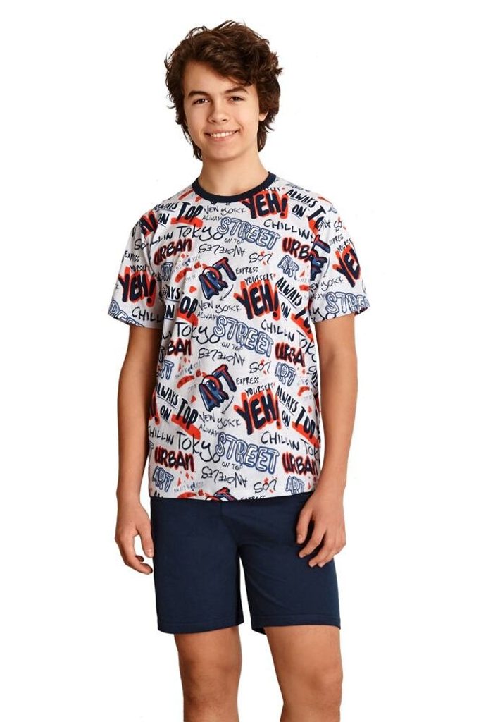 Pohodlné pyžamo pro starší kluky se street art vzorem na triku. Pohodlné pyžamo pro starší kluky se street art vzorem na triku. Materiál: 100% bavlna (horní díl) 92% bavlna, 8% polyester (dolní díl)