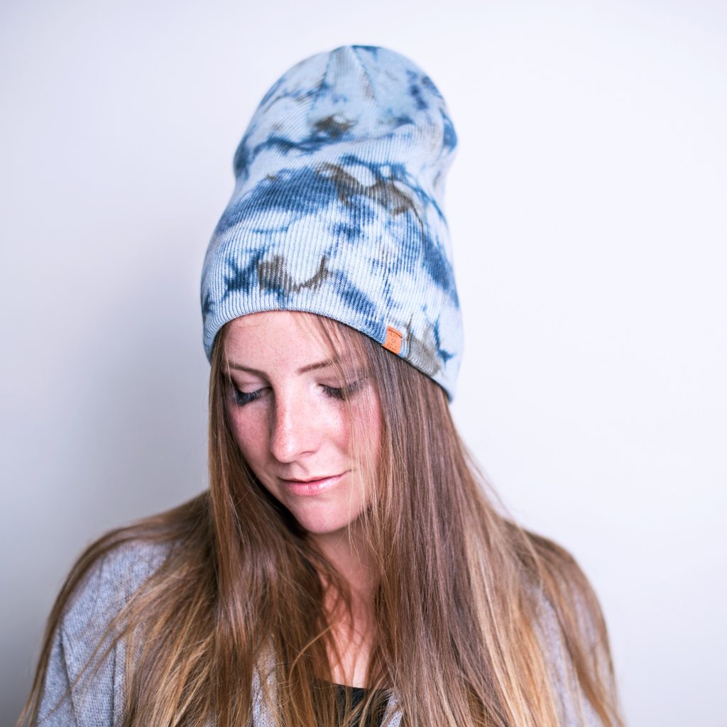 Dámská jednoduchá čepice modrá s mramorováním