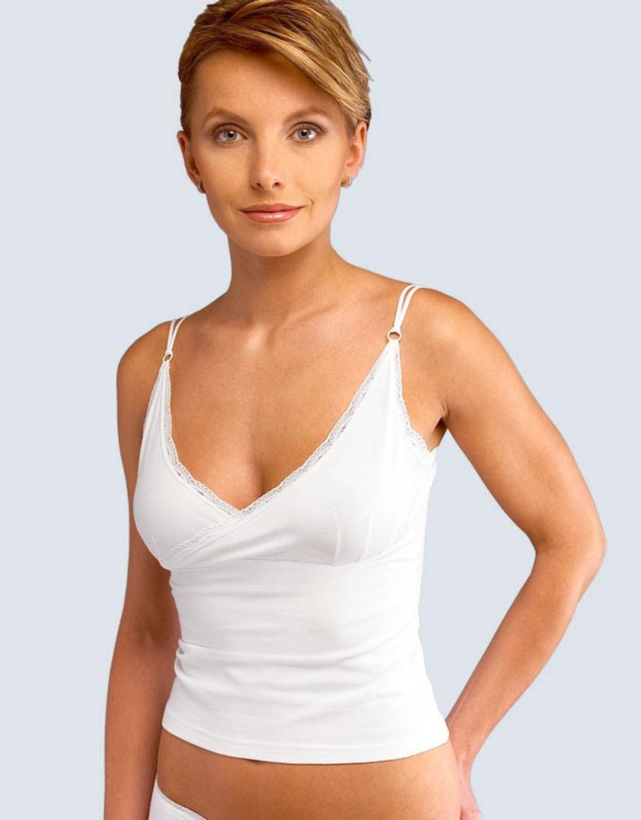 košilka, úzká ramínka, šité, s krajkou, jednobarevné značky GINA, kód 18995. Složení: 92% Bavlna 8% Elastan. Kolekce: Minerva