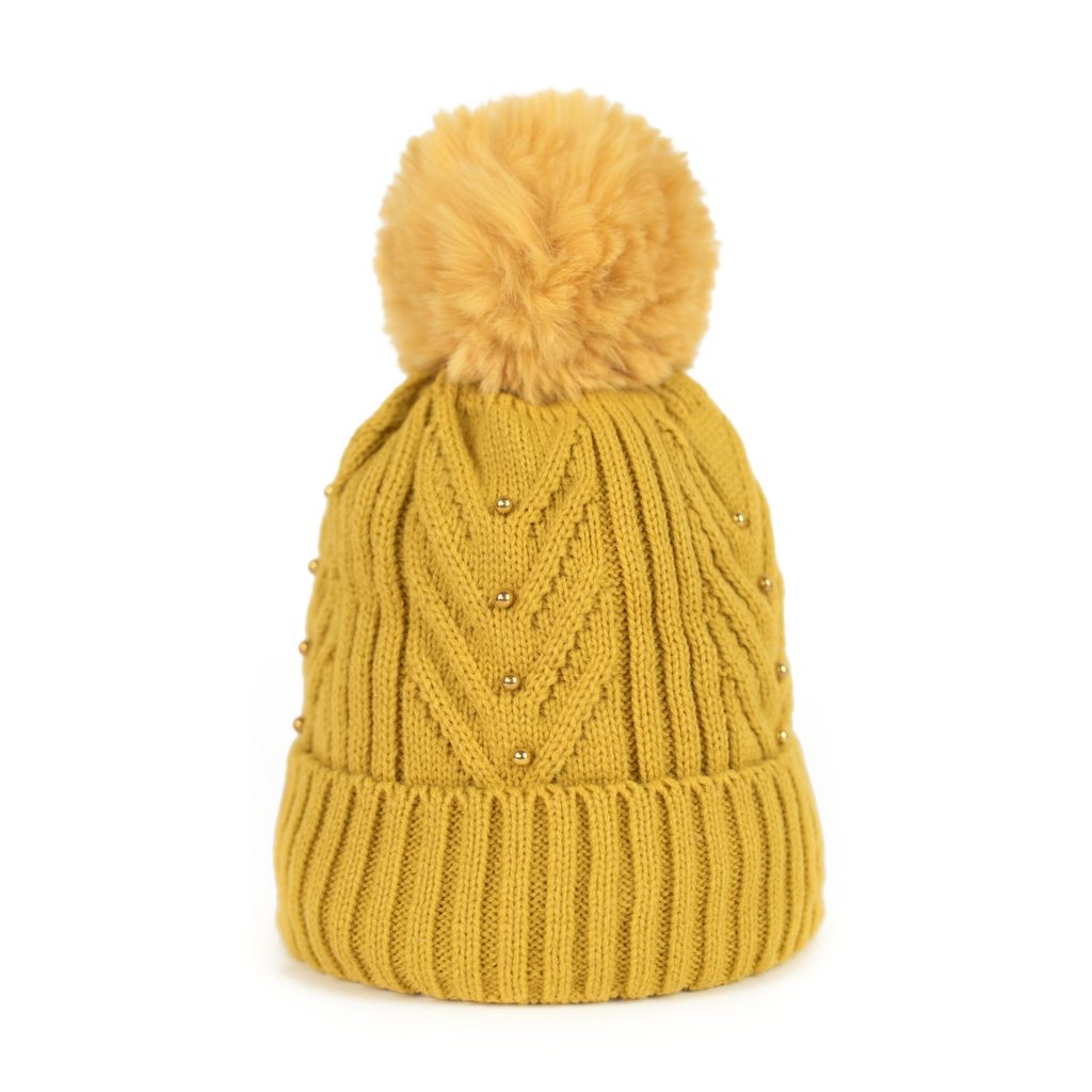 Zimní čepice s bambulí. Provedená z měkkého a příjemného materiálu. Bambule provedená z umělé kožešiny. Spodní část na zahnutí. Velmi teplá. Výrobek zateplený uvnitř umělou kožešinou.