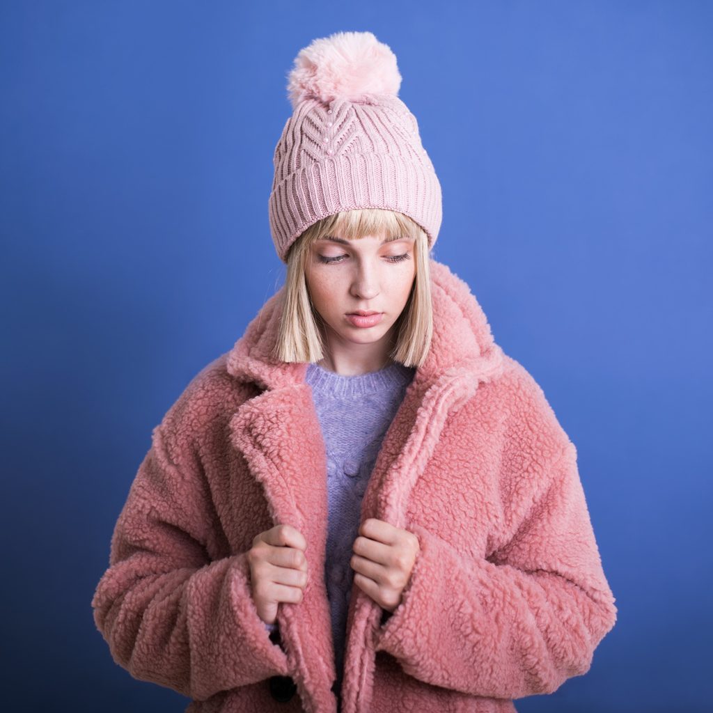 Zimní čepice s bambulí. Provedená z měkkého a příjemného materiálu. Bambule provedená z umělé kožešiny. Spodní část na zahnutí. Velmi teplá. Výrobek zateplený uvnitř umělou kožešinou.