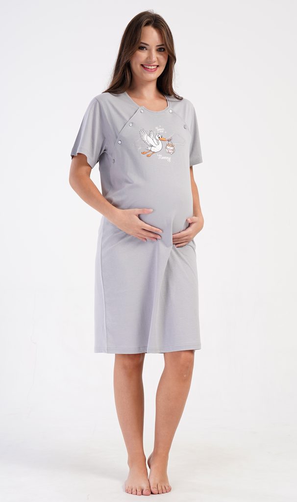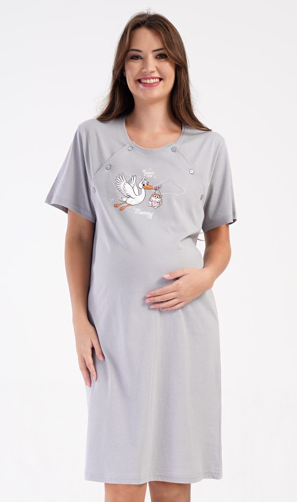 Dámská mateřská noční košile Čáp s miminkem.| Filtr Barva | Šedá |