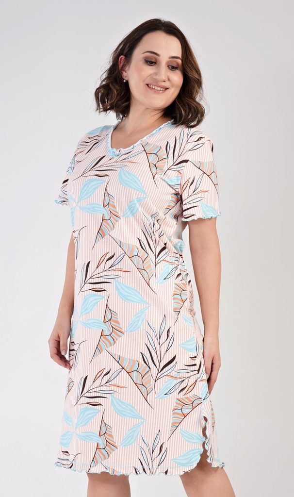 Dámská bavlněná noční košile s krátkým rukávem Edita.| Filtr Barva | Modrá, Béžová |