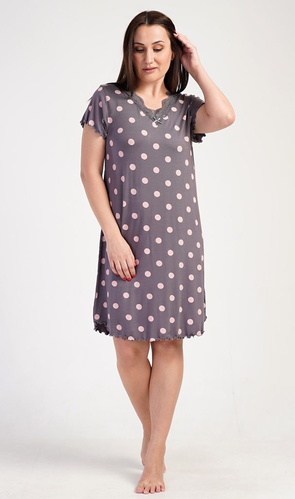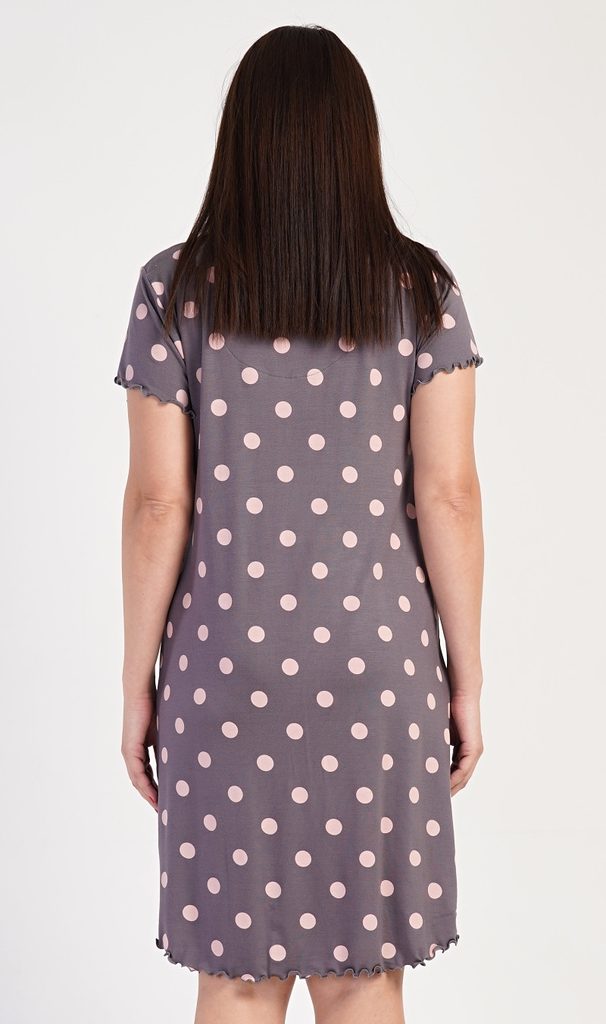 Dámská noční košile s krátkým rukávem Puntík - tmavě šedá