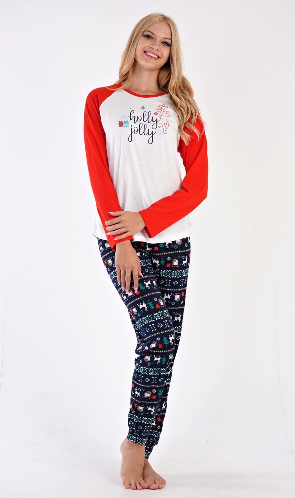 Dámské pyžamo dlouhé Anežka - červená Dámské pyžamo dlouhé Vánoční dárek - bílá