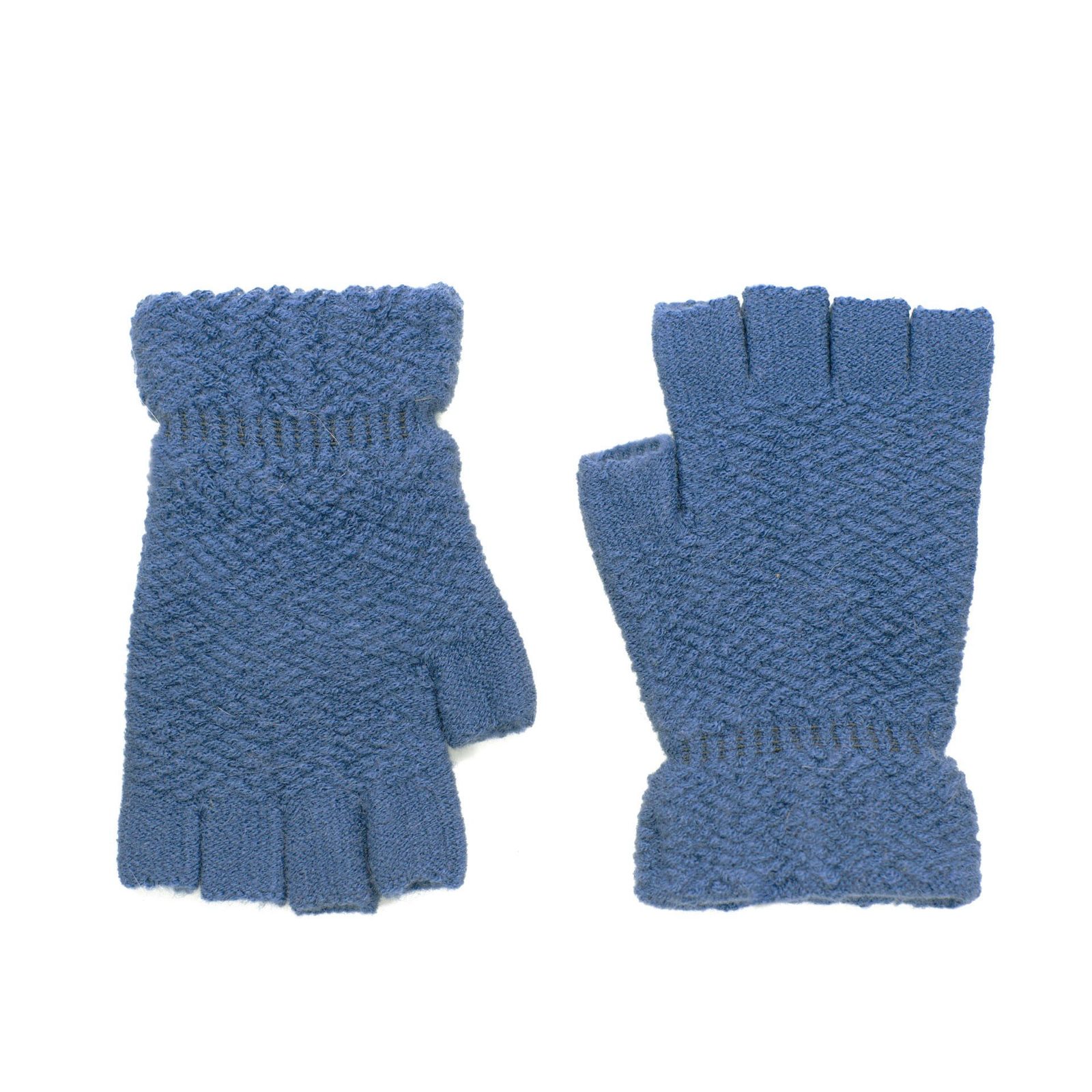 Šedé teplé rukavice se vzorem Rukavice bez prstů tyrkysové