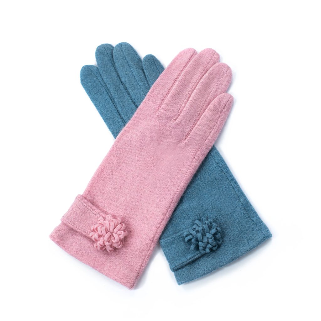 Klasické vlněné rukavice. Jemně elastické. Tyto vkusné rukavice jsou výjimečně ženské a elegantní. Výrobek dekorovaný květinou.