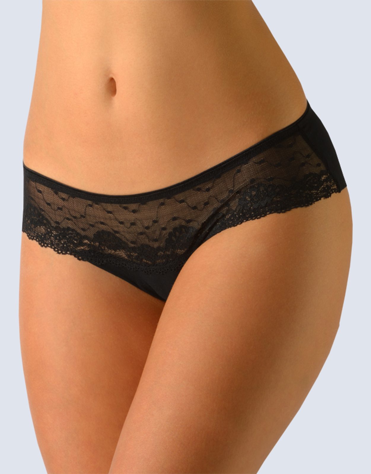 Dámské kalhotky francouzské, šité, bokové, s krajkou, jednobarevné Delicate 14104P - černá