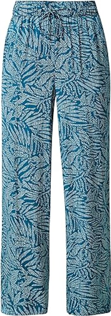 Dámské plátěné kalhoty s.Oliver modré Kalhoty s potiskem květin bílé
