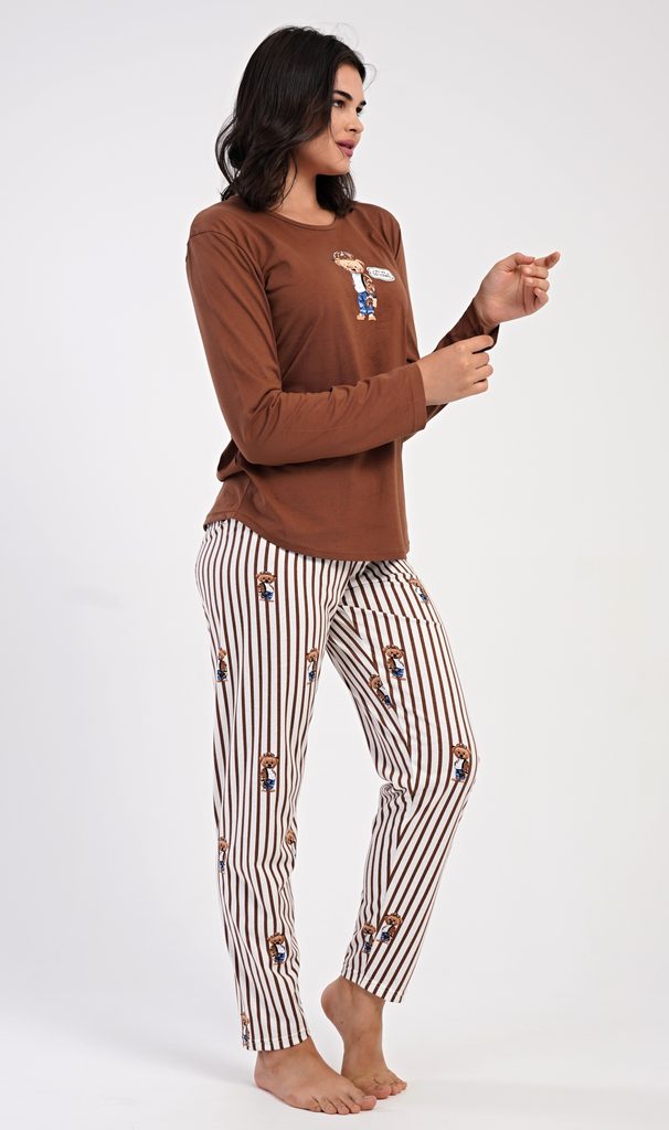 Dámské bavlněné pyžamo s dlouhým rukávem Bear.| Filtr Barva | Hnědá |