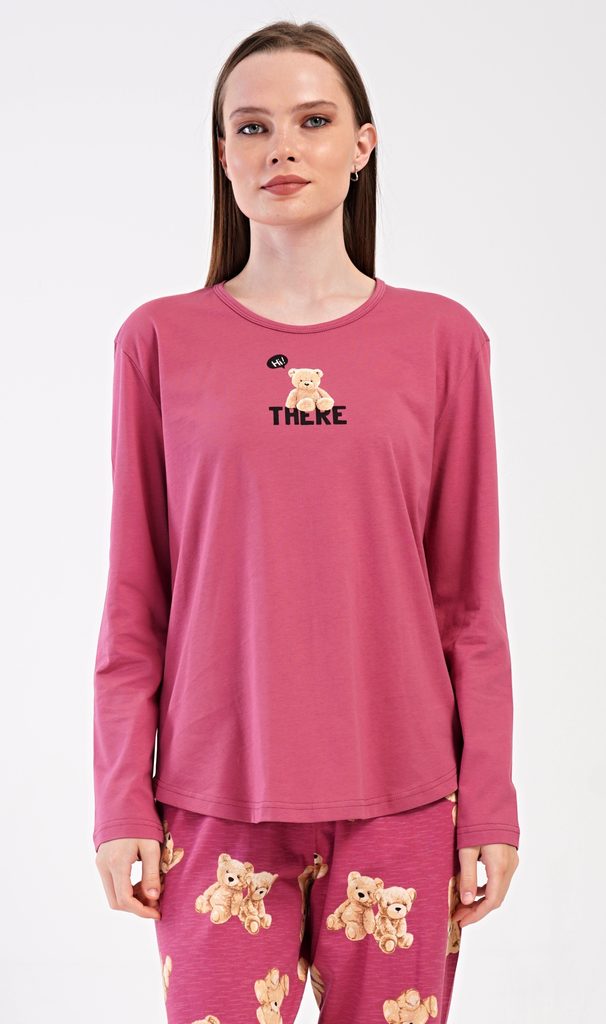 Dámské pyžamo s dlouhým rukávem Pink bear.| Filtr Barva | Růžová |