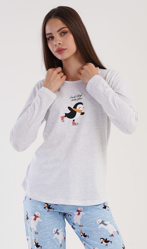 Dámské pyžamo dlouhé Tučňák na ledě.| Filtr Barva | Šedá |