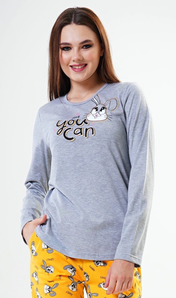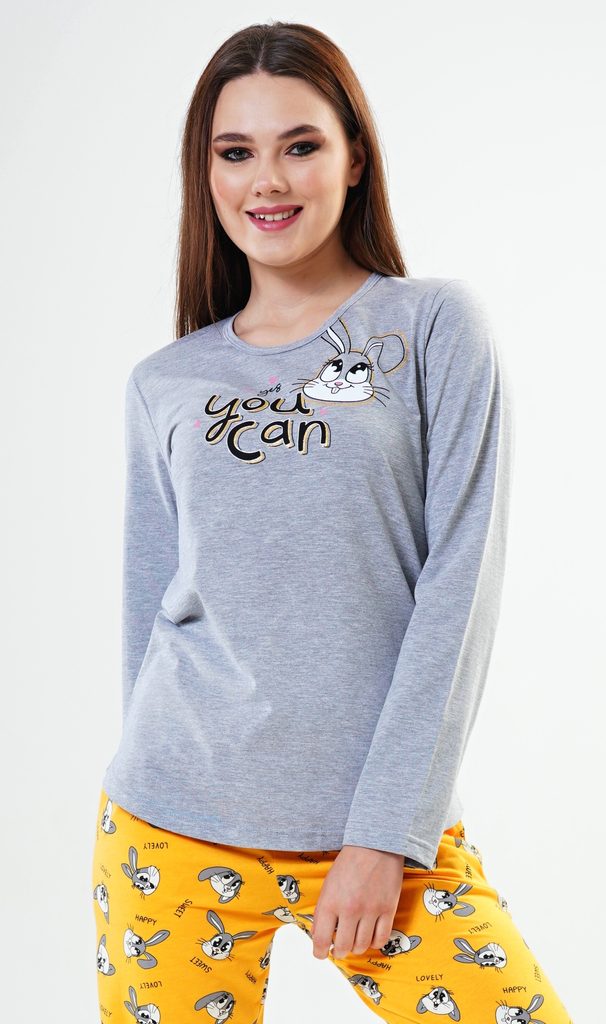 Dámské pyžamo s dlouhým rukávem Zajíc.| Filtr Barva | Šedá |