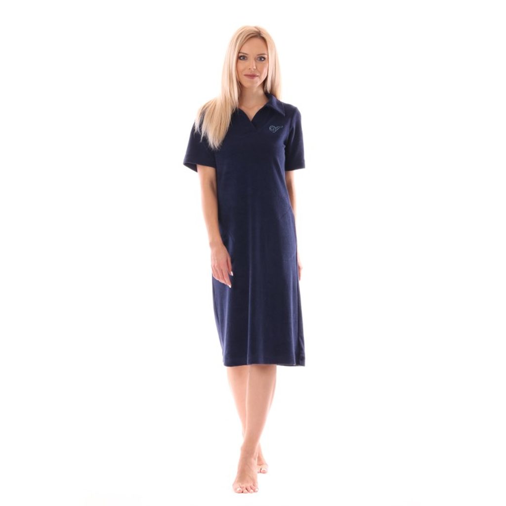 Lehké volnočasové šaty v pohodlném volném střihu s límečkem a krátkým rukávem mají kapsy v bočním švu a jsou ozdobeny logem v barvě šatů. Vyrábí se v pěti základních barvách z nichž si jistě vyberete tu pravou pro vás.