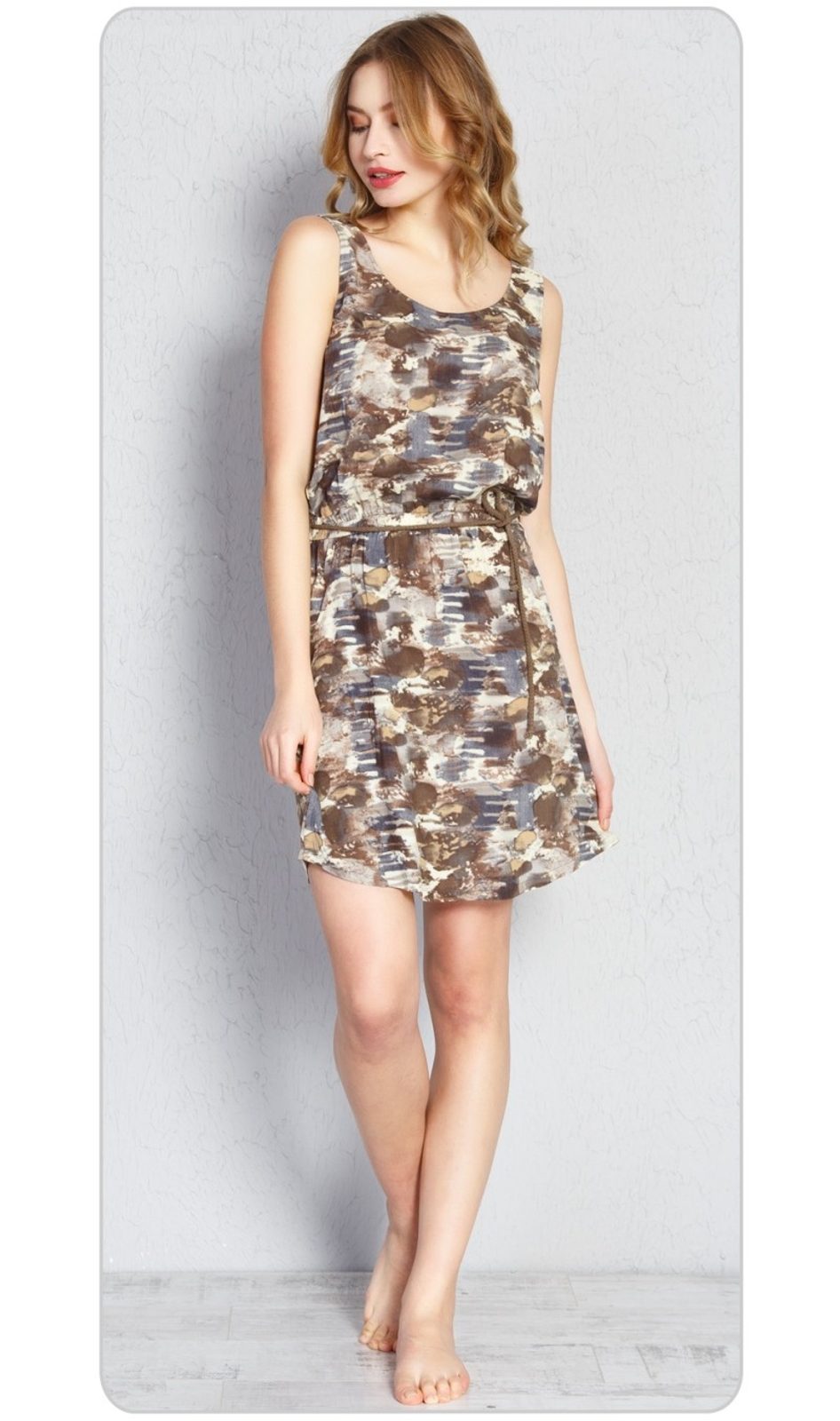 Dámské letní šaty na ramínka Jenny. Šaty mají široká ramínka a jsou vzorované v pase na zavazování. Materiál je poddajný a jemný na dotek.
