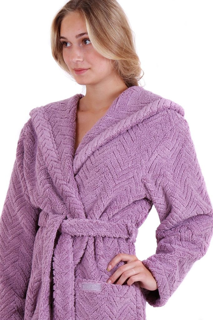 Luxusní dámský župan z kolekce Athena je složen z nejkvalitnější dlouhovlákenné bavlny, díky které ho nebude chtít sundat. Exklusivní složení je známé pro svou hedvábnou jemnost a měkkost, jeho výroba je navíc velice šetrná k životnímu prostředí. V krásné bezinkově fialové barvě budete vypadat něžně a elegantně, široká kapuce pak modelu dodá sportovnější nádech.