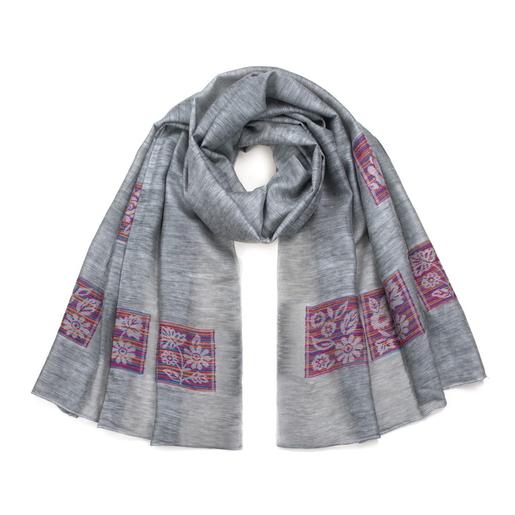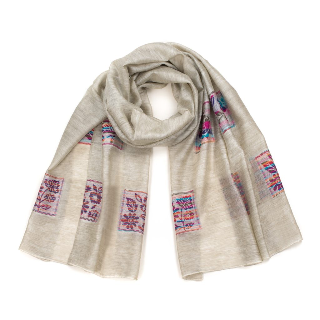 Dámská šála zdobená květinovým motivem. Provedená z měkkého a příjemného materiálu. Ideální zároveň pro každodenní i elegantnější stylizace. Klasická a nadčasová. Ideální na přechodná období.