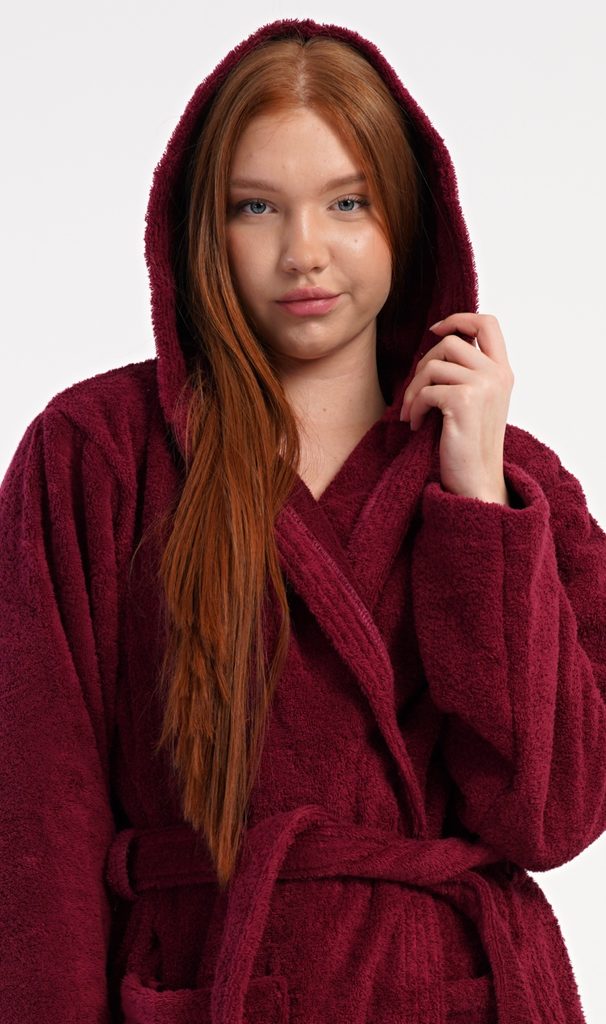 Dámský froté župan s kapucí Julie.| Filtr Barva | Vínová |