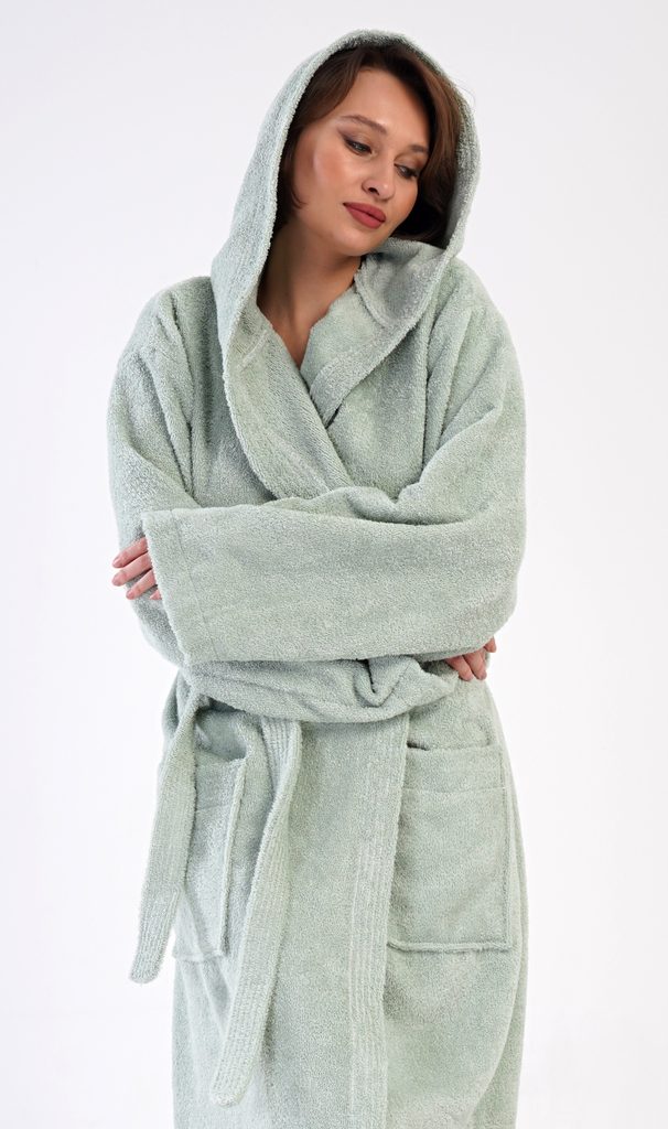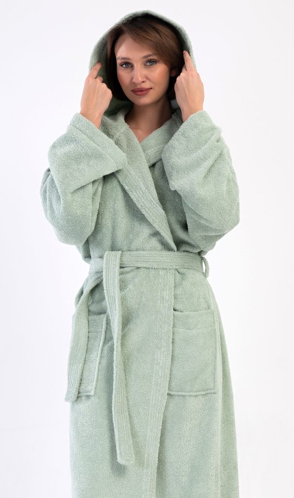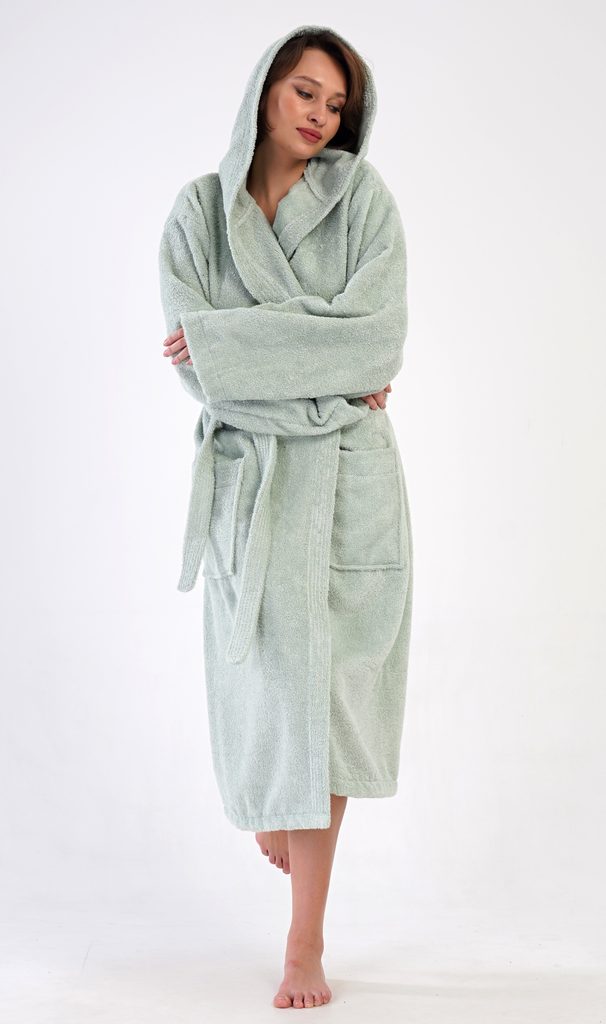 Dámský dlouhý froté župan s kapucí Máta.| Filtr Barva | Zelená |