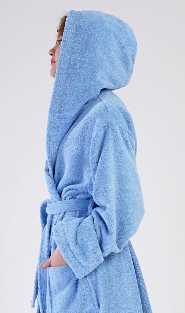 Dámský bavlněný froté župan s kapucí Modrásek. Dámský dlouhý župan s kapucí a páskem ke stažení je vhodný po koupeli i na povalování se doma na gauči. Froté župan má praktické kapsy, které oceníte při návštěvě wellness. Použitý bavlněný materiál je příjemný a poddajný na dotek.