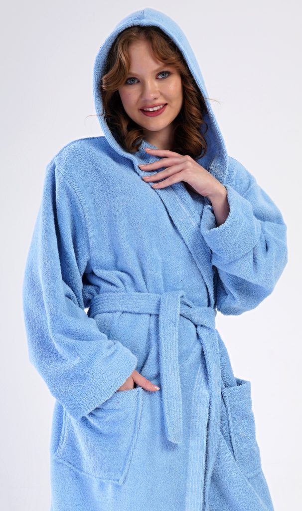 Dámský dlouhý froté župan s kapucí Modrásek.| Filtr Barva | Modrá |
