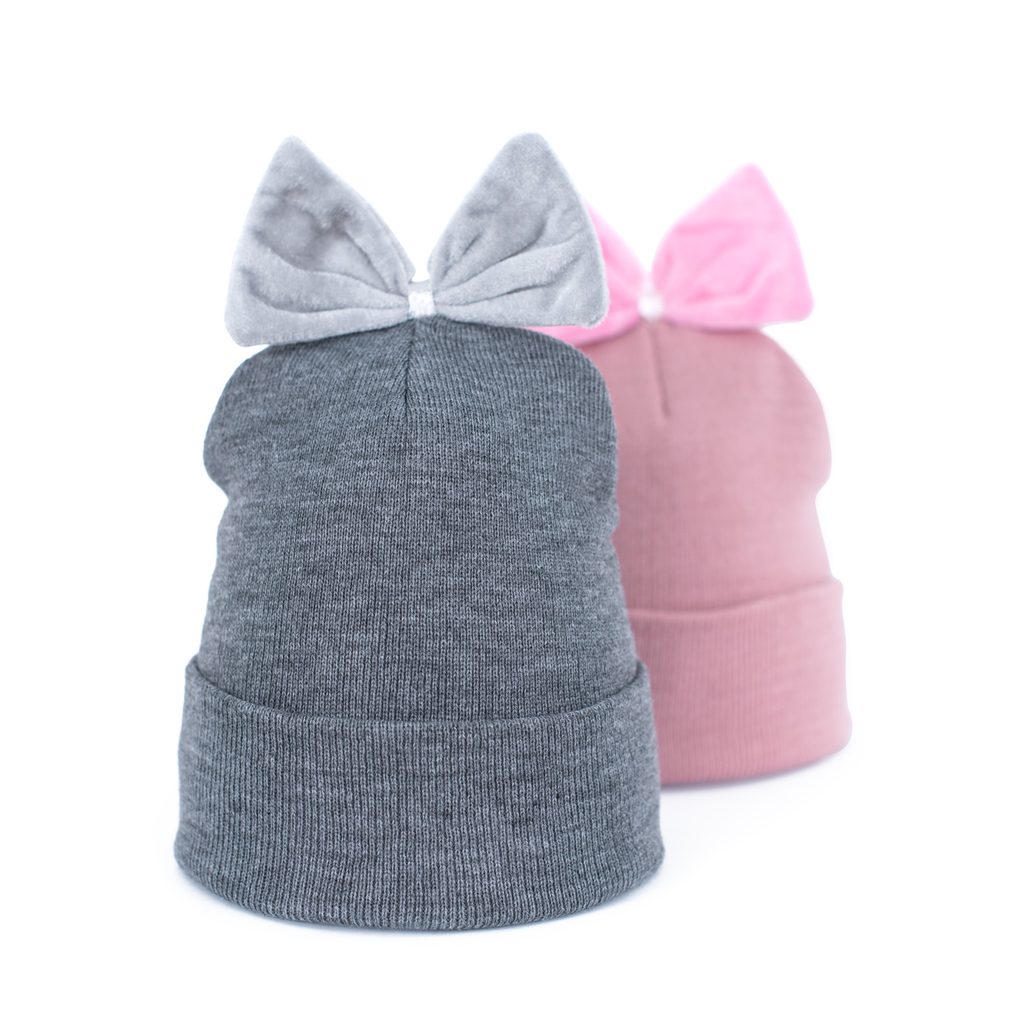 Dětská čepice s mašlí šedá