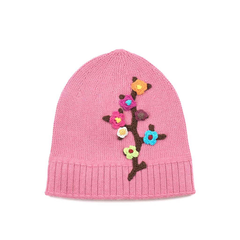 Dětská čepice se stromem růžová