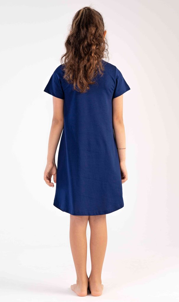 Dětská bavlněná noční košile s krátkým rukávem Motýlci. Na jednobarevné košilce s krátkým rukávem je obrázek tří motýlků. Použitý bavlněný materiál je poddajný a jemný na dotek.