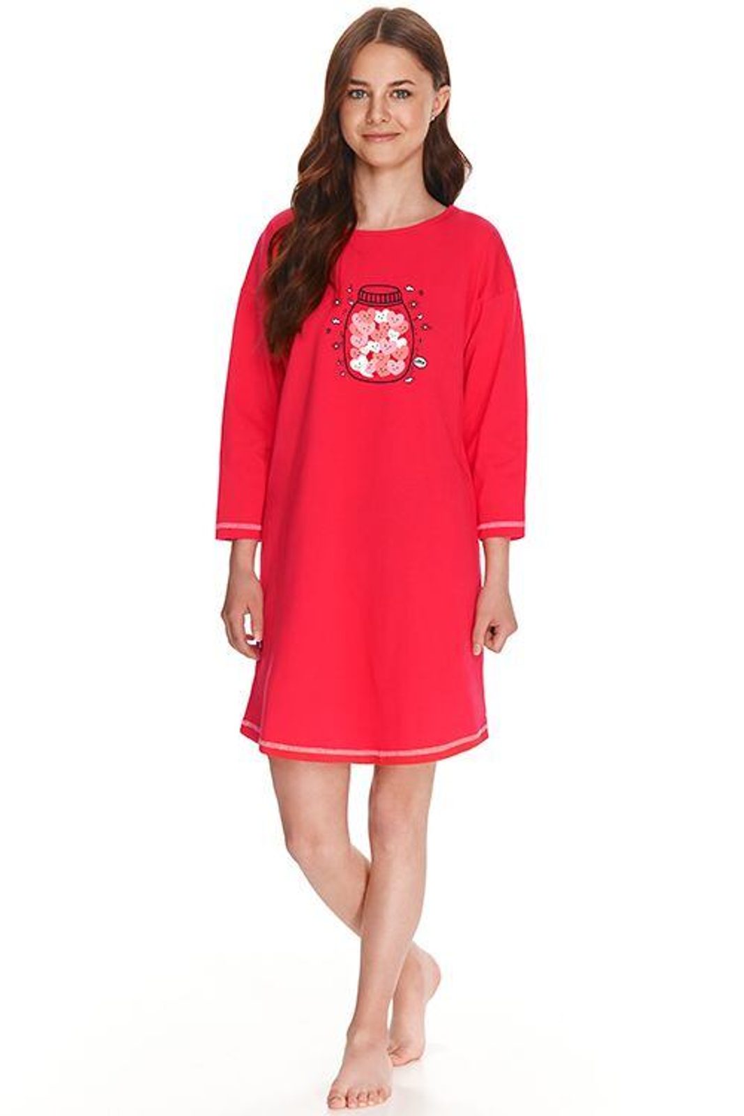 Noční košilka pro starší dívky má krásnou červenou barvu a trendy potisk s motivem srdíček vepředu. Noční košilka pro starší dívky má krásnou červenou barvu a trendy potisk s motivem srdíček vepředu. Materiál: 100% bavlna