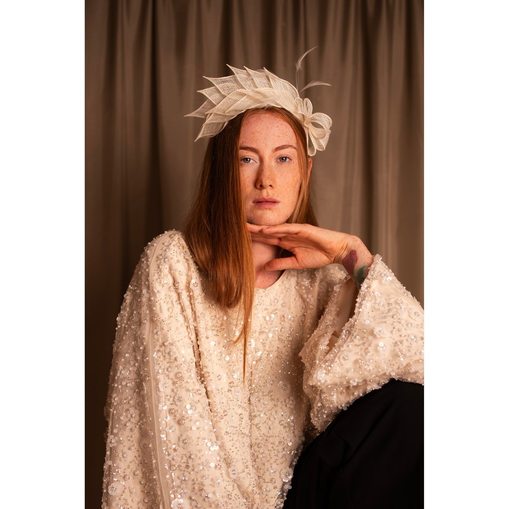Neobvykle stylový a vkusný fascinátor. Upevňovaný na pásce. Krásně se na hlavě prezentuje. Elegantní a stylový, dodá charakter každé kreaci.