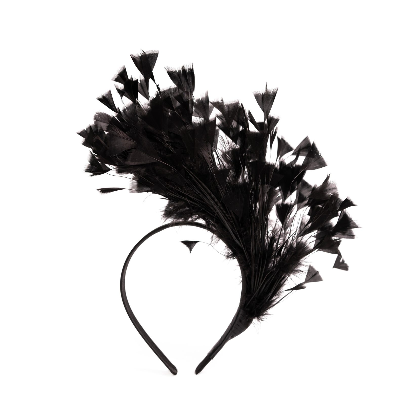 Bohatě zdobený fascinátor na výjimečné příležitosti. Upevňovaný na pásce. Dodá špetku tajemnosti a elegance každé ženě. Elegantní a stylový, dodá charakter každé kreaci.