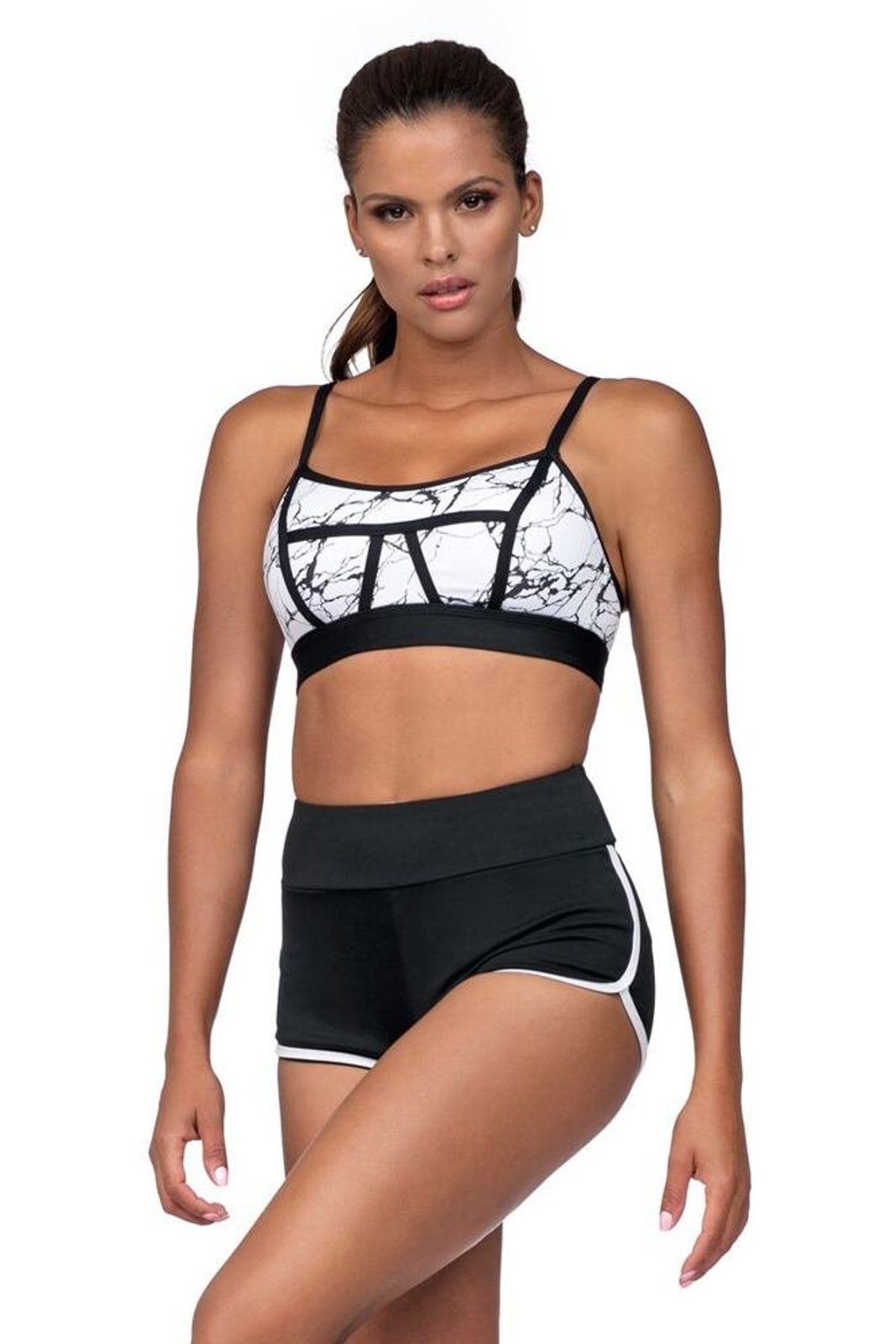Dámské fitness šortky s kontrastním pruhem na boku a dolním okraji. Dámské fitness šortky s kontrastním pruhem na boku a dolním okraji. Materiál: 87% polyester, 13% polyuretan